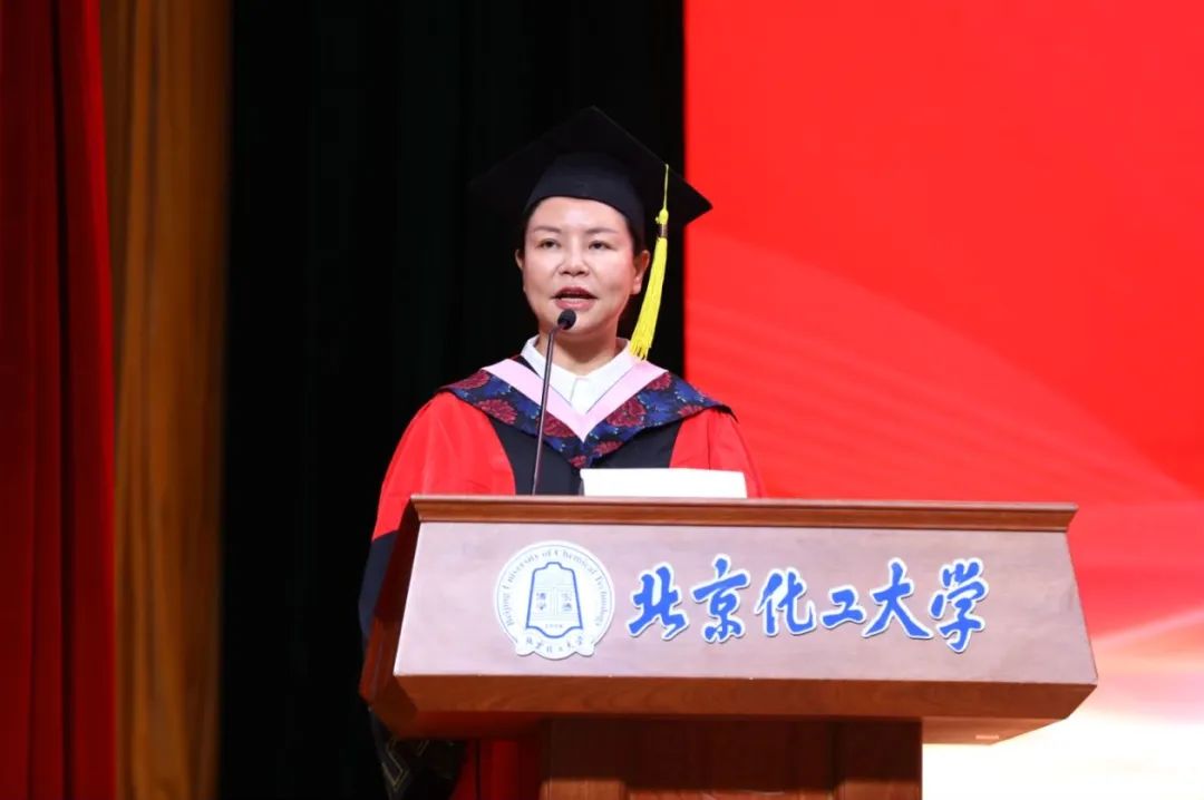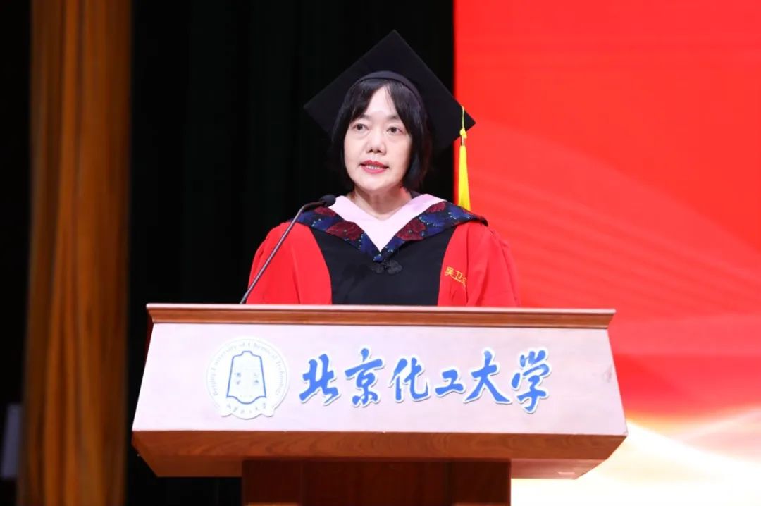 吴卫红教授作为教师代表发言,她表示短短几年时间,同学们都发生了蜕变,迎来了收获的时刻,勉励每一位毕业生都不负韶华、迎难而上,用努力和拼搏去实现自己的人生理想!她希望毕业生们胸怀大志,以“国家兴亡、匹夫有责”的情怀,自觉将个人理想融入到国家富强、民族振兴、人民幸福的历史洪流中,成为有使命感的北化人。