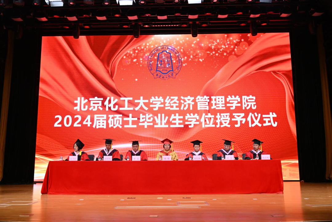 2024年6月20日上午,北京化工大学经济管理学院2024届硕士毕业生学位授予仪式在科学会堂隆重举行。北京化工大学党委副书记、纪委书记曲雁出席典礼并与经济管理学院全体毕业生合影,出席本次活动的还有经济管理学院党委书记高红峡、副院长李宾(主持学院全面行政工作)、党委副书记田军、党委副书记兼副院长汤志松、副院长孙祥栋、教师代表吴卫红教授、研究生工作组全体老师以及全体2024届毕业生。仪式由经济管理学院党委书记高红峡主持。