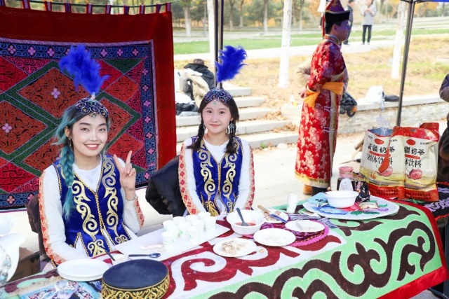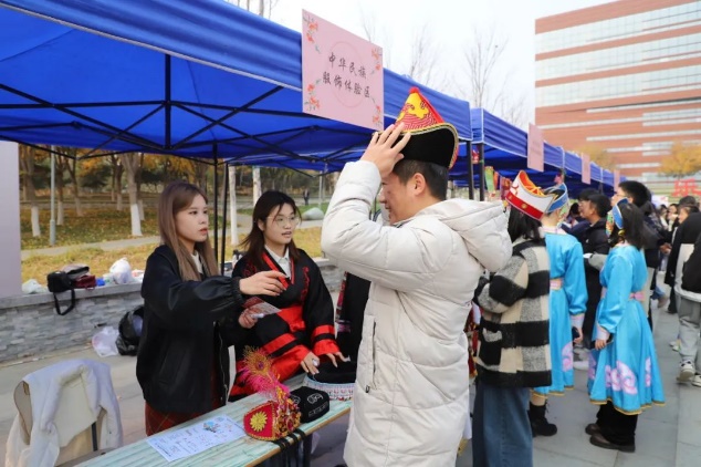 在中华民族服饰体验区,陈列着华丽大方的汉服、庄重典雅的藏族哈达、土家族精美的头饰、**尔族玲珑精致的花帽、大气俊秀的蒙古袍,同学们在活动中体验、穿戴各类传统服饰,并在特色景观处拍照打卡,感受多元的中华文化,不断增强对中华文化的自信。