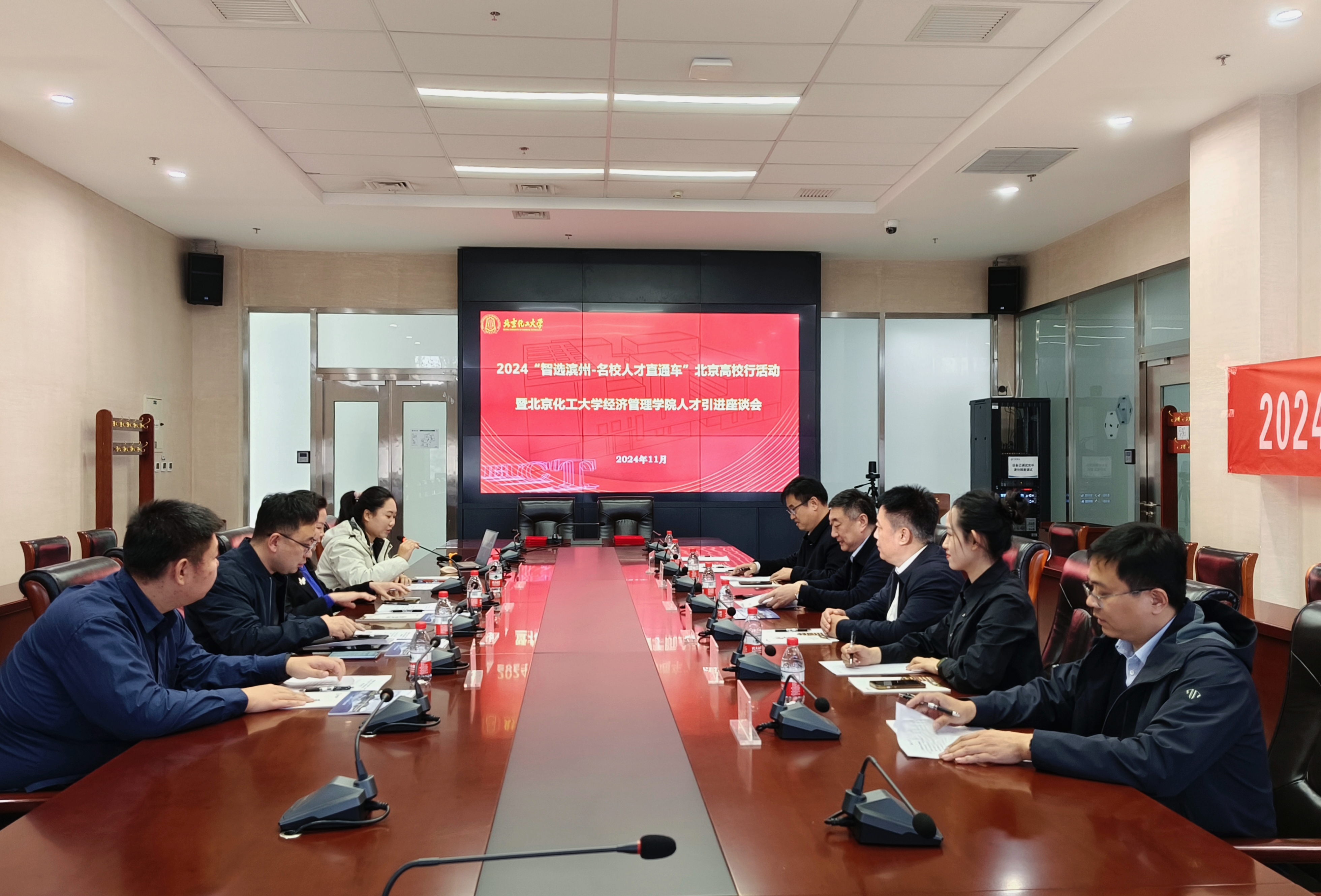 11月14日下午,“智选滨州-名校人才直通车”北京高校行活动暨北京化工大学经济管理学院人才引进座谈会在我校昌平校区图书馆一层网络会议室举行。经济管理学院党委书记高红峡、党委副书记田军,滨州市人力资源和社会保障局党组副书记颜波、惠民县委组织部副部长李永新等同志出席会议。
