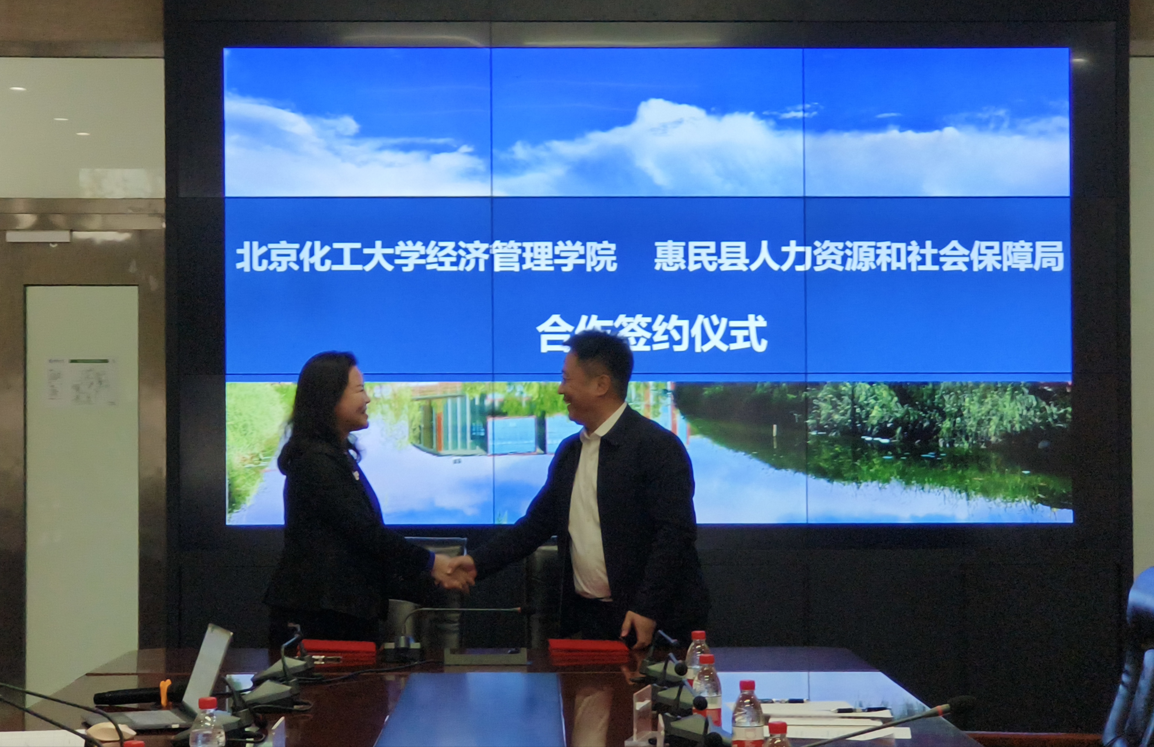 随后,北京化工大学经济管理学院党委书记高红峡与惠民县委组织部副部长李永新分别代表双方签署“北京化工大学经济管理学院与惠民县人力资源和社会保障局 大学生就业实习与实训基地合作协议”,为校地双方在人才领域的长期合作奠定基础。