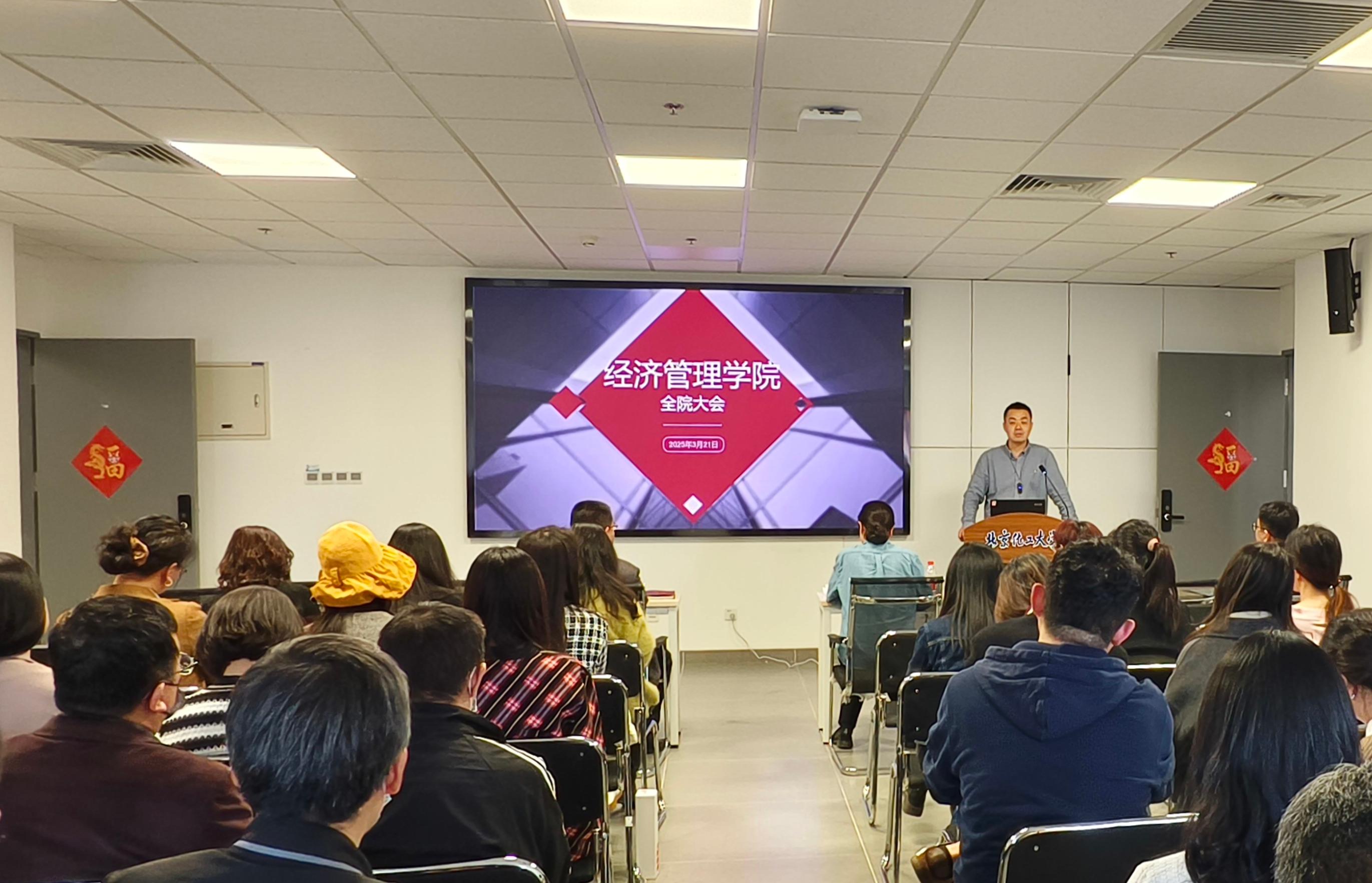 3月21日下午,经济管理学院召开2025年全面从严治党工作会议暨警示教育大会。本次会议旨在深入贯彻落实上级党委关于全面从严治党的各项要求,总结2024年学院党风廉政建设工作成果,部署2025年重点任务,进一步推动学院全面从严治党向纵深发展。学院全体教职工参加会议。