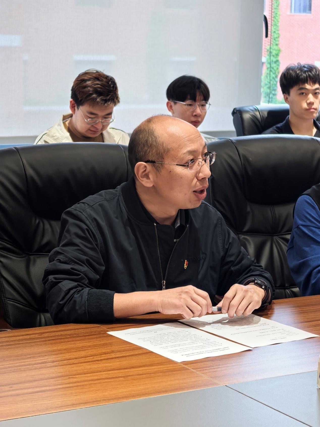 汤志松老师带领与会同志学习了习近平总书记在2019年纪念五四运动100周年大会上的重要讲话以及在2025年5月2日给新疆克孜勒苏柯尔克孜自治州阿图什市哈拉峻乡谢依特小学戍边支教西部计划志愿者服务队全体队员的回信。