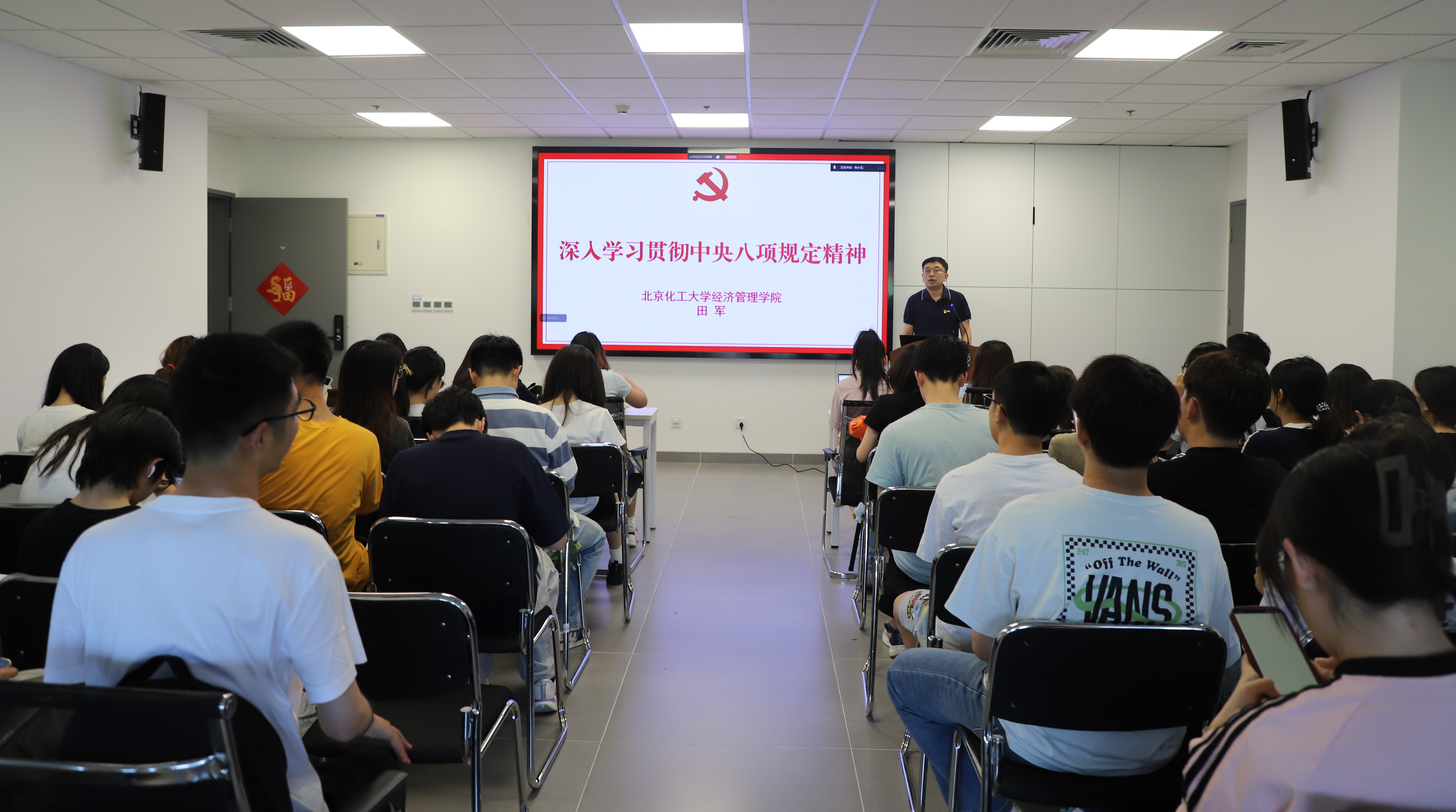 为深入学习习近平新时代中国特色社会主义思想,认真贯彻落实中央八项规定精神,引导广大青年强化党性修养与纪律意识,切实将党的优良传统与作风融入日常学习与工作实践。2025年6月5日,经济管理学院党委组织“初心·使命”专题党课,由学院党委副书记田军、学院党委副书记、副院长汤志松分别讲授《深入学习贯彻中央八项规定精神》《红日初升迎变局》专题党课,学院2025年春季学期“初心·使命”专题培训班发展对象、入党积极分子参加学习。