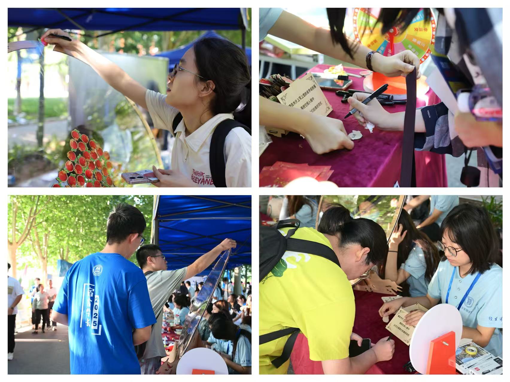在迎新帐篷内,新生们满怀期待地在小石榴木牌上写下自己的“大学关键词”投入“树洞”。这一独特的互动环节,不仅是新生对未来的期许,更是他们与经管故事的温柔开端。石榴树将替他们珍藏这份青春初心,见证他们在学院的每一步成长。
