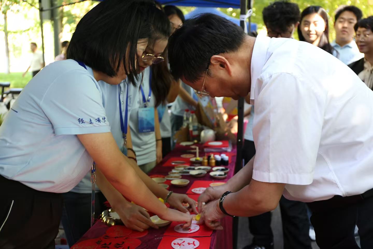 校院领导对此次迎新工作高度重视。上午时分,校院领导一行莅临学院迎新现场,实地视察迎新工作进展,对现场工作人员致以真挚的慰问。领导们听取了学院关于迎新流程的具体安排,重点了解了学院文化建设及各类特色工作推进情况,尤其对现场的“经生有你”文创产品给予了高度认可,称赞这些文创产品设计独具巧思、制作工艺精良,深度融入了学院文化元素与办学特色,生动展现出学院师生的创新意识与艺术风采。