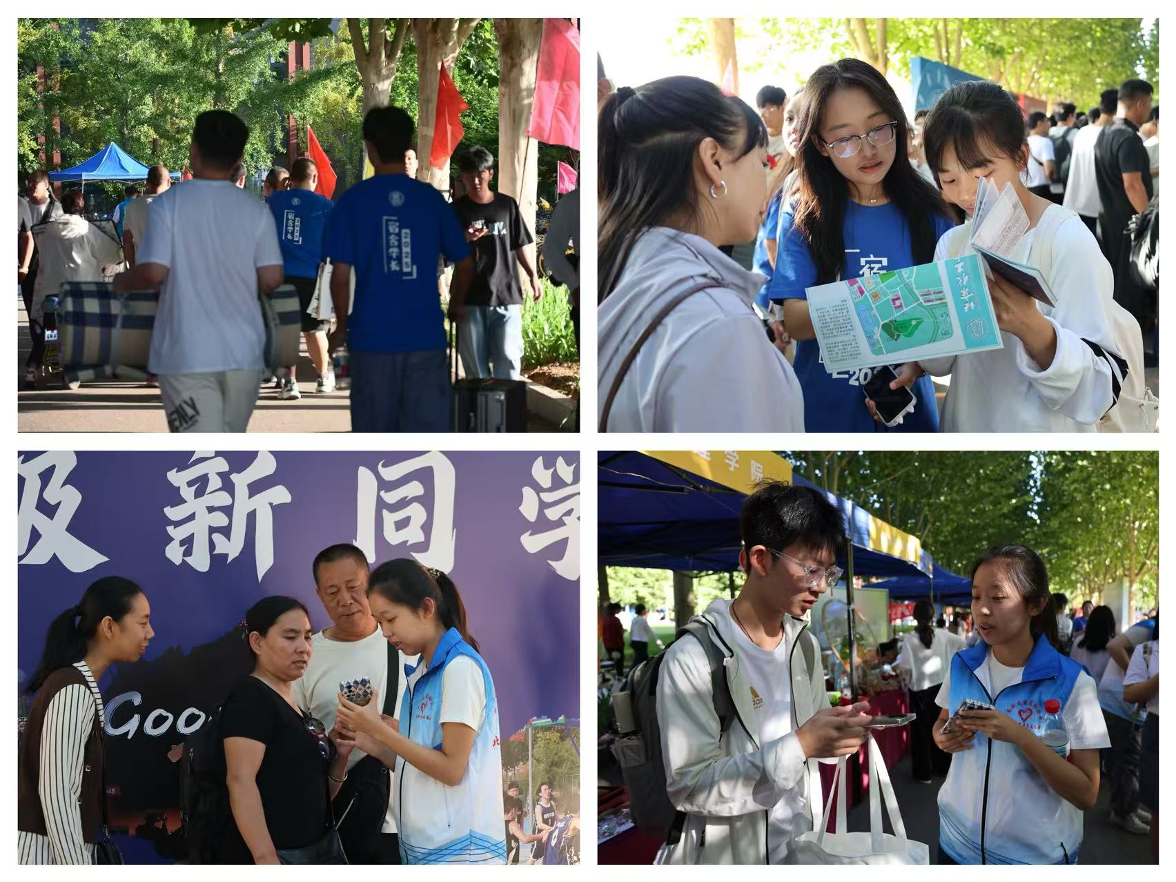 学长学姐们化身校园“向导”,提前在校园各角落设立迎新站点,手举醒目的欢迎牌,以饱满的热情迎接每一位新同学的到来。他们主动帮助新生搬运行李、指引路线,耐心解答新生及家长的各类疑问,用实际行动传递着学院的温暖与关怀。