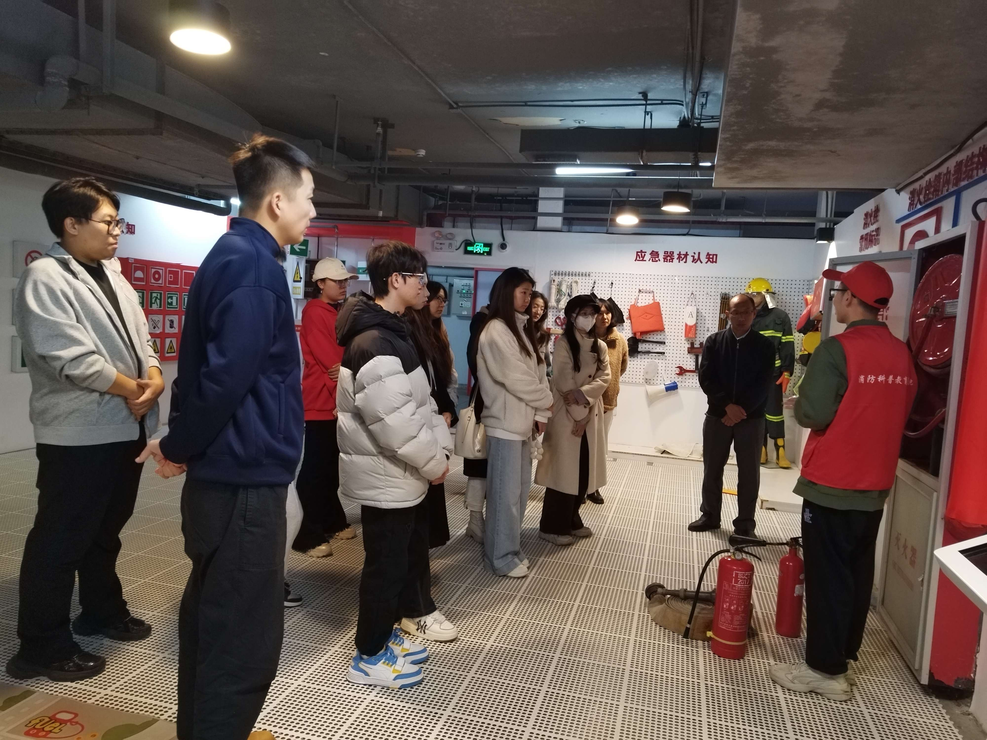 下午14:00,全体人员准时在安全教育体验馆门前集合。在讲解员的引导下,师生们依次参观了消防安全、实验室安全、自然灾害、应急救护、交通与反诈等五大主题展区。通过VR火场逃生、模拟地震平台、心肺复苏实操、油锅灭火演练等沉浸式体验项目,大家“零距离”感受了突发灾害场景,系统学习了灭火器使用等实用技能。参观过程中,结合讲解员安全管理经验现场演示,同学们踊跃提问、积极互动,形成了“师生共学、教学相长”的生动氛围。