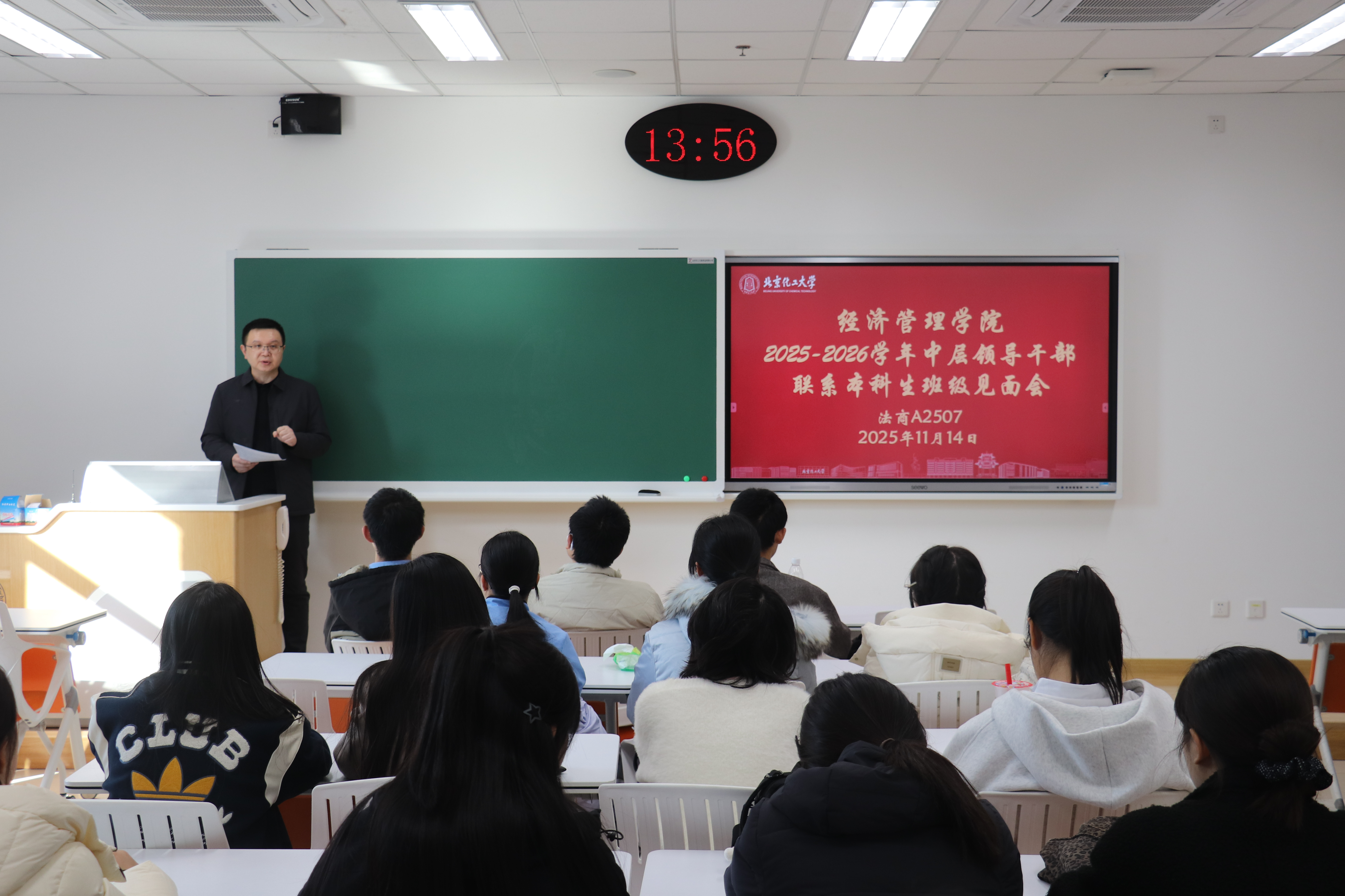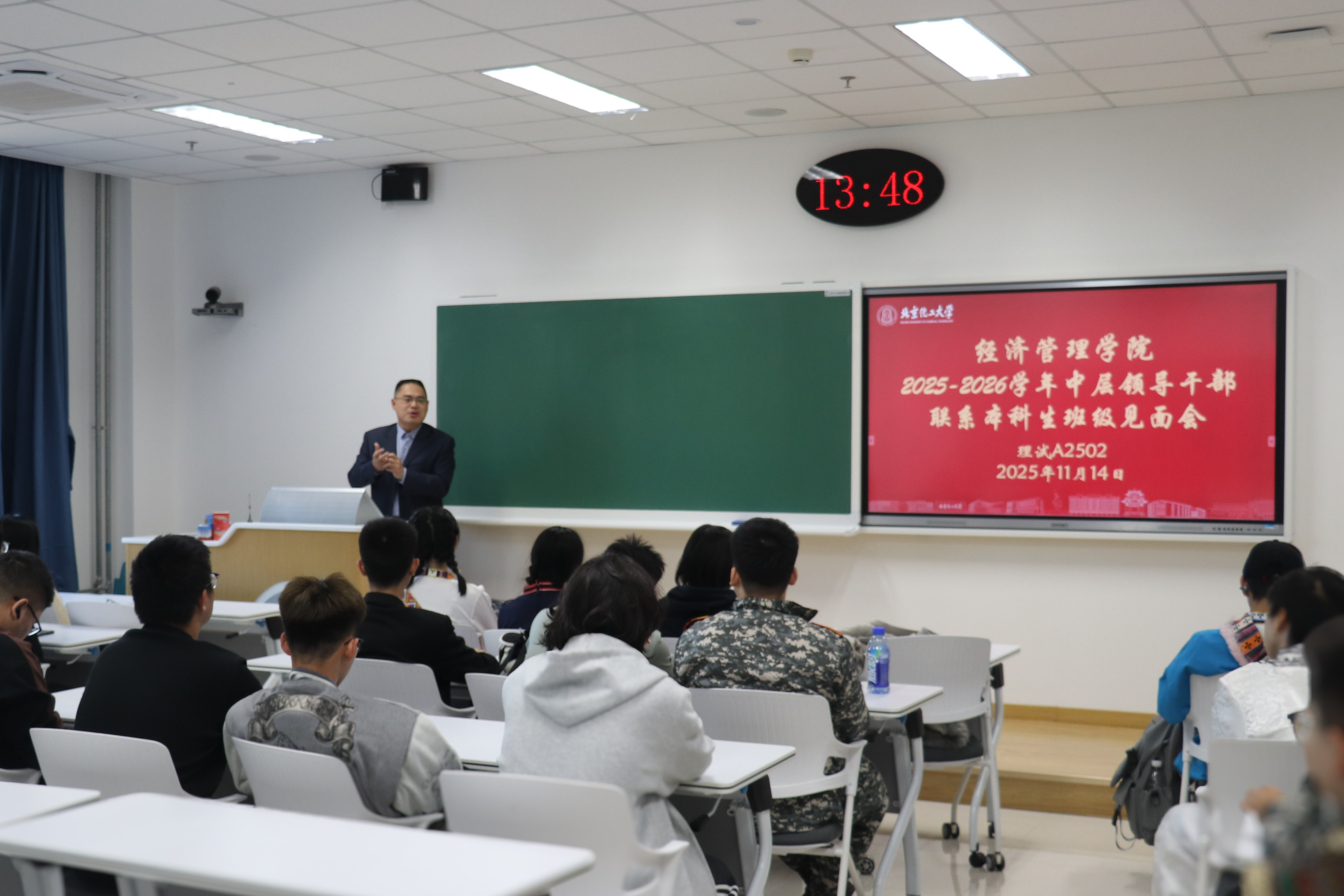 为进一步落实学校中层领导干部联系本科生班级制度,推动干部深入班级一线,11月14日下午,学院组织召开中层领导干部与2025级本科生班级见面会。来自学校相关部处及学院的中层领导干部联系人参加了此次见面会。
