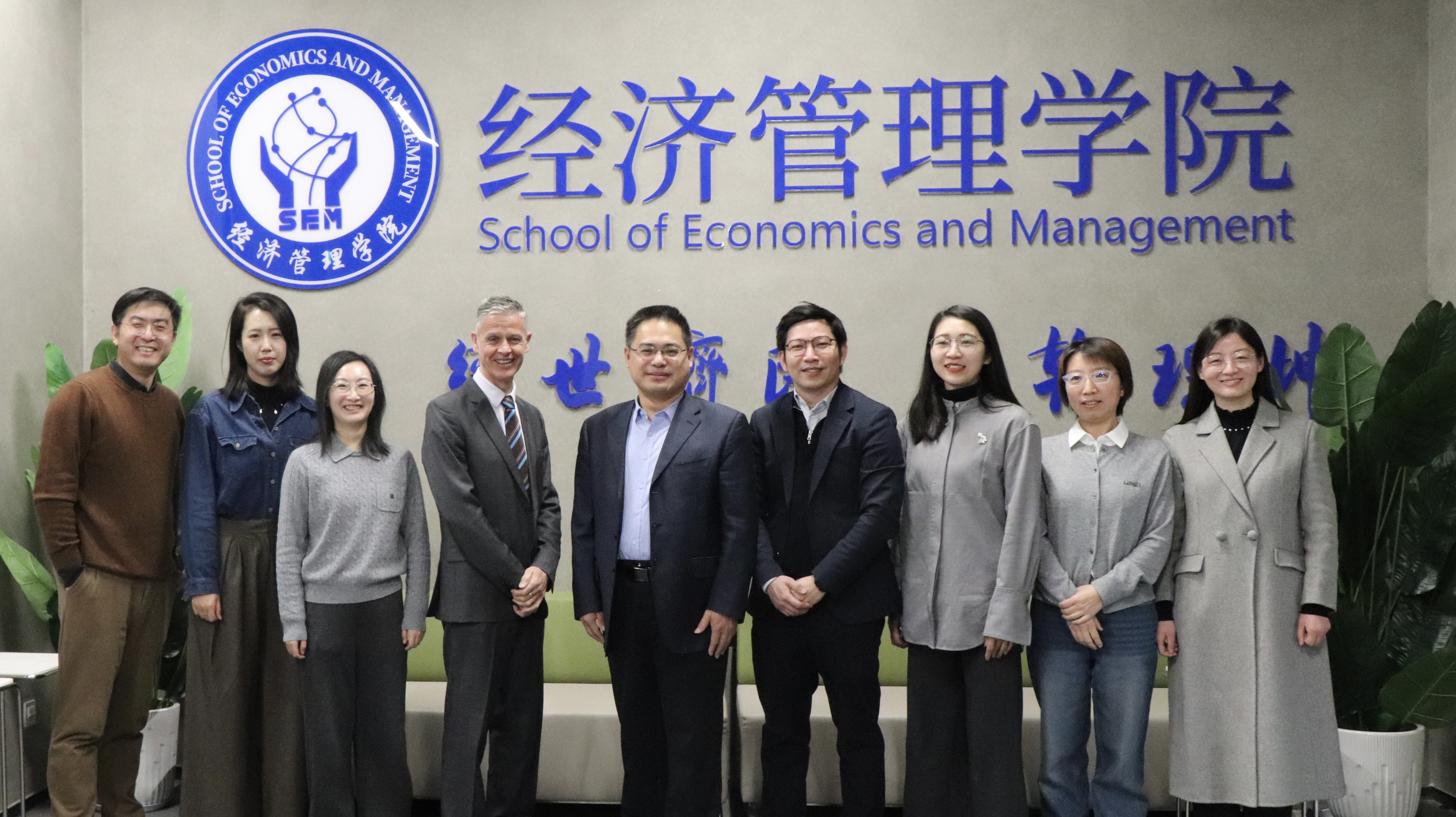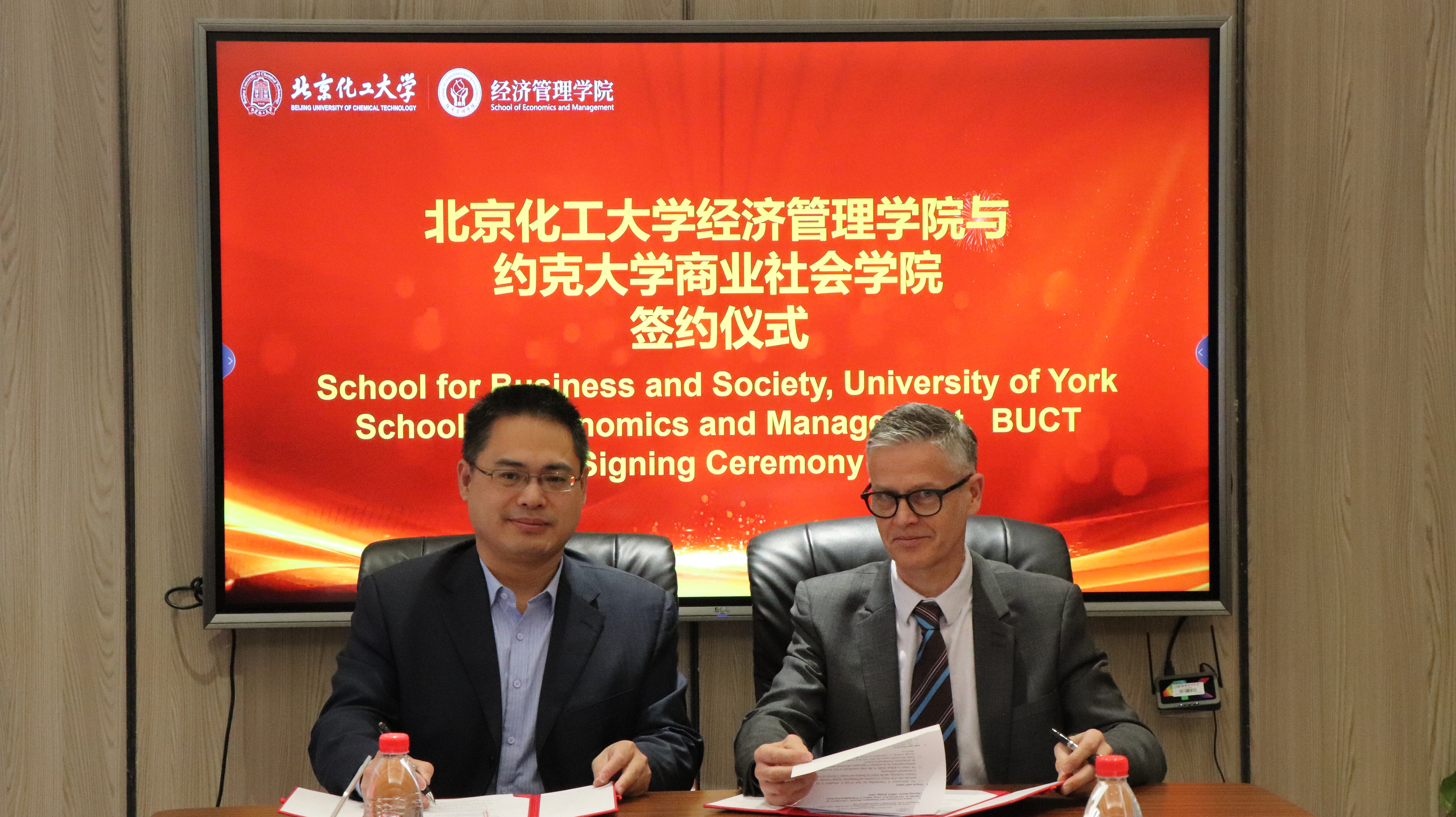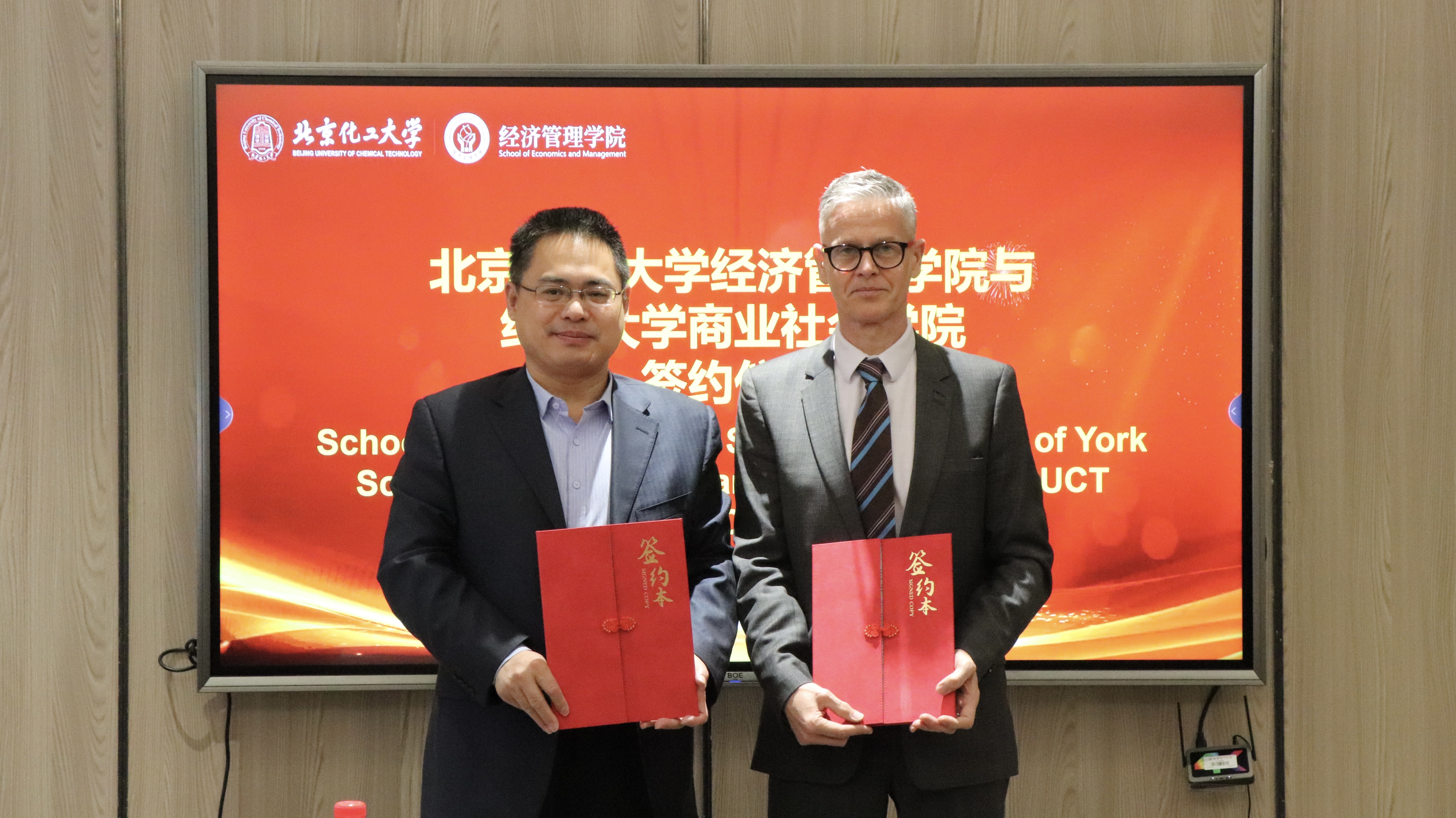 2025年12月15日,英国约克大学商学院到访北京化工大学经济管理学院。约克大学商学院国际事务副院长Neil Lunt、会计与金融系讲师Kiet Duong、国际合作关系专员Helen Feng组成代表团到访。经济管理学院院长李宾及各系部负责人出席签约座谈会。