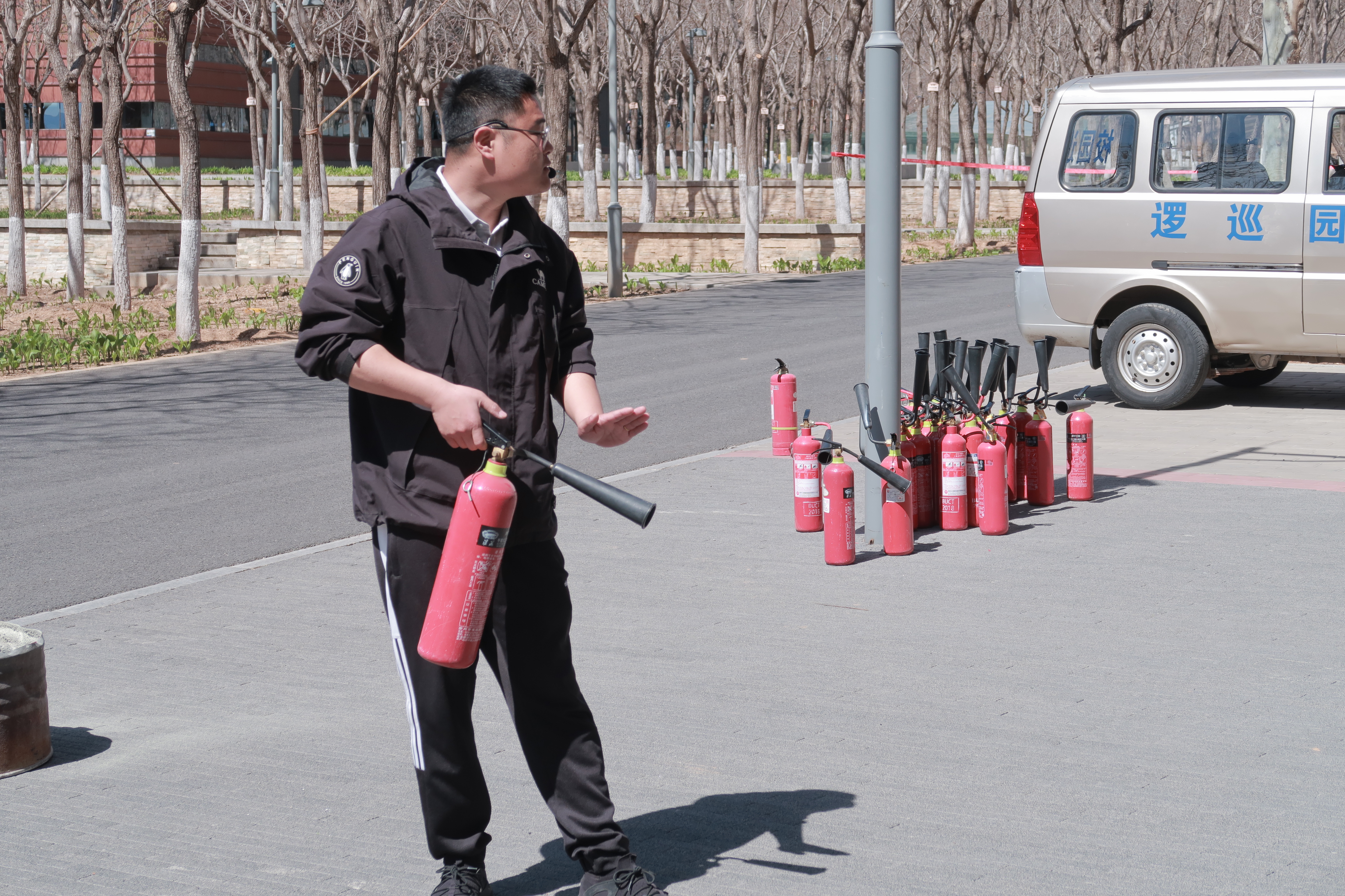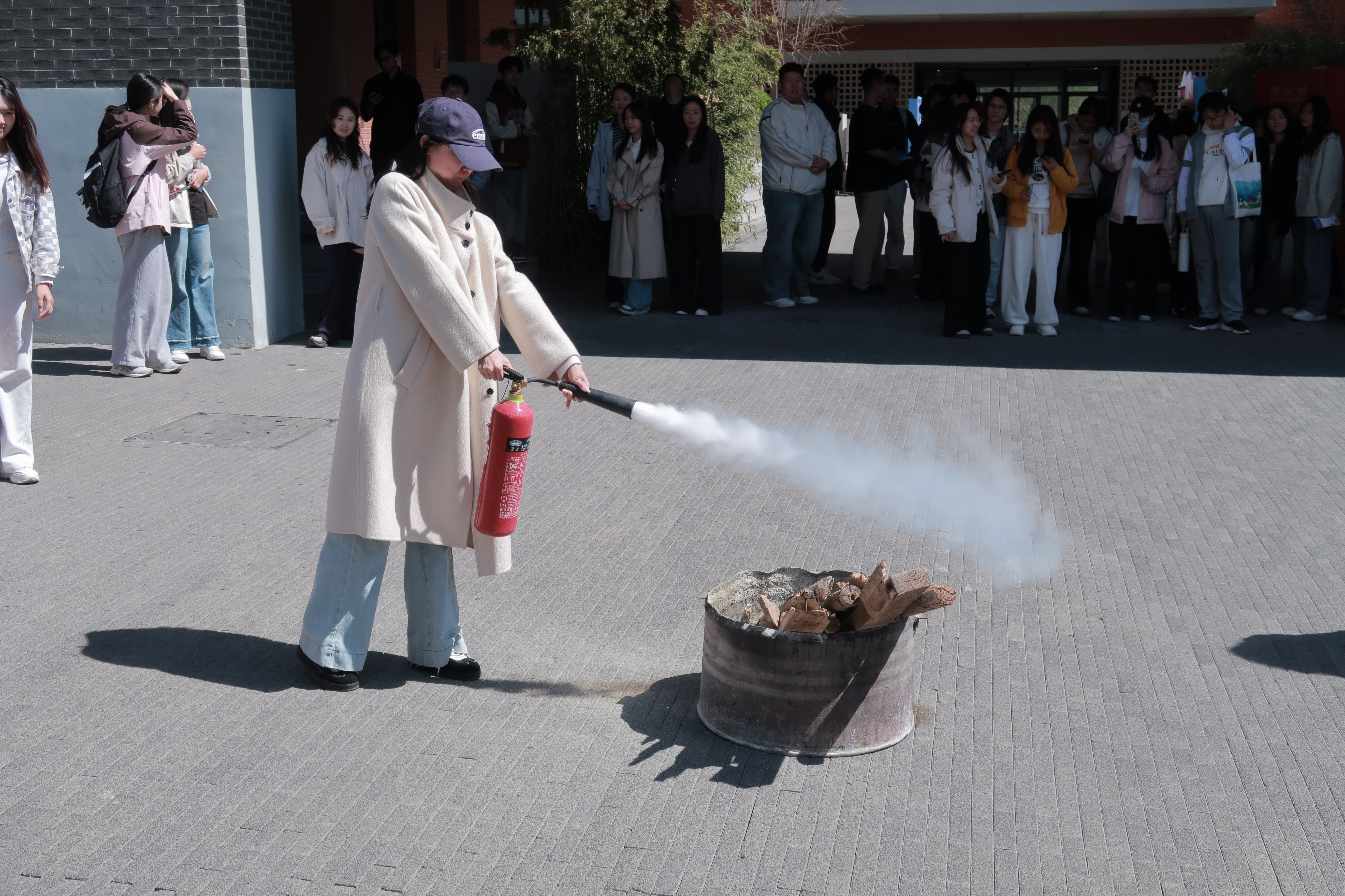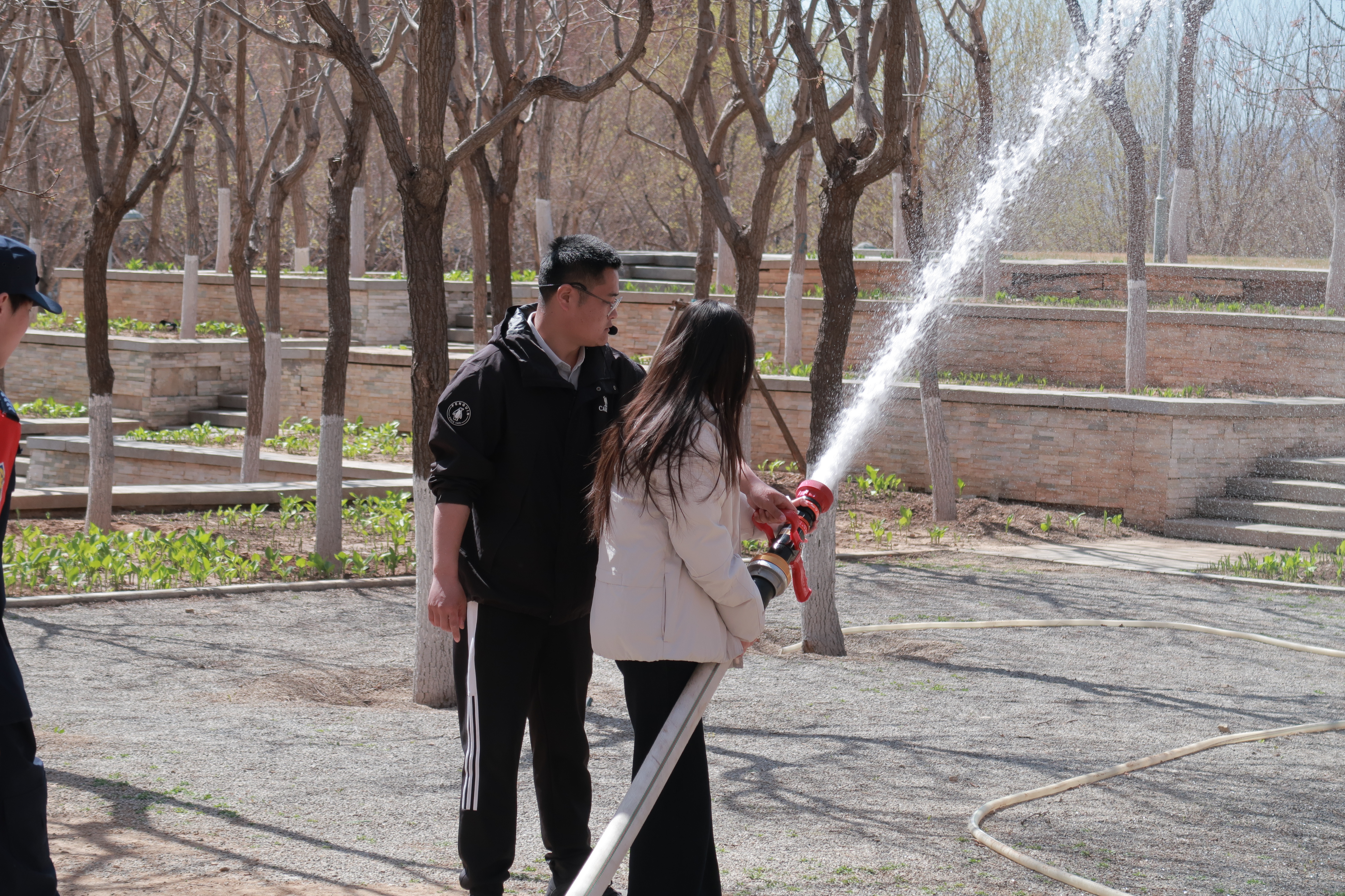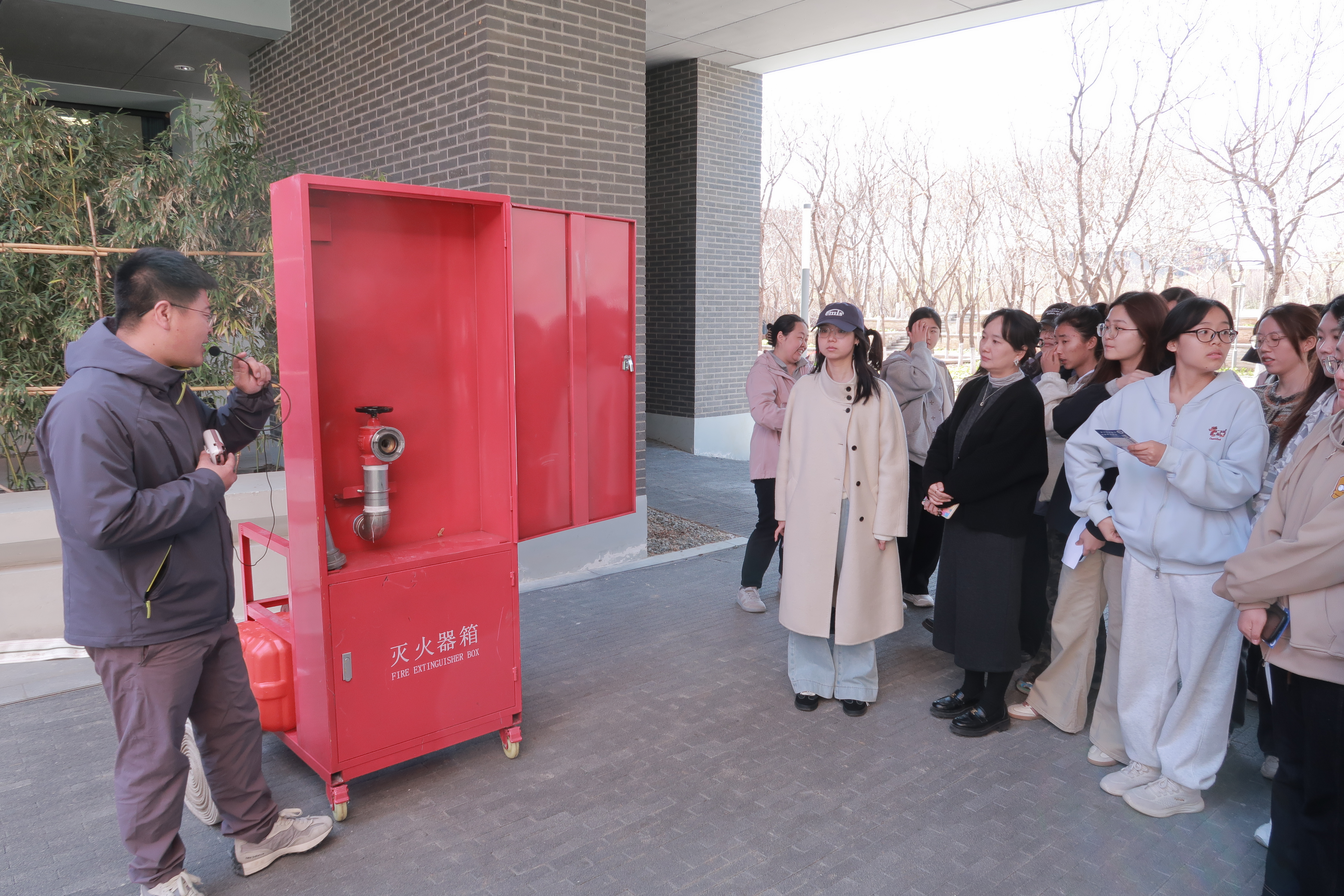 随后开展了消防安全实操演练活动,邀请校保卫处老师现场讲解消防安全知识。详细介绍了灭火器、室内消火栓、消防水枪等常用消防器材的工作原理和操作要点,并现场演示了灭火器灭火和消防水枪出水操作。在实操体验环节,师生代表在专业指导下,依次操作灭火器扑灭明火、连接消防水带进行喷水演练,亲身掌握消防器材的使用技能,现场学习氛围热烈。
