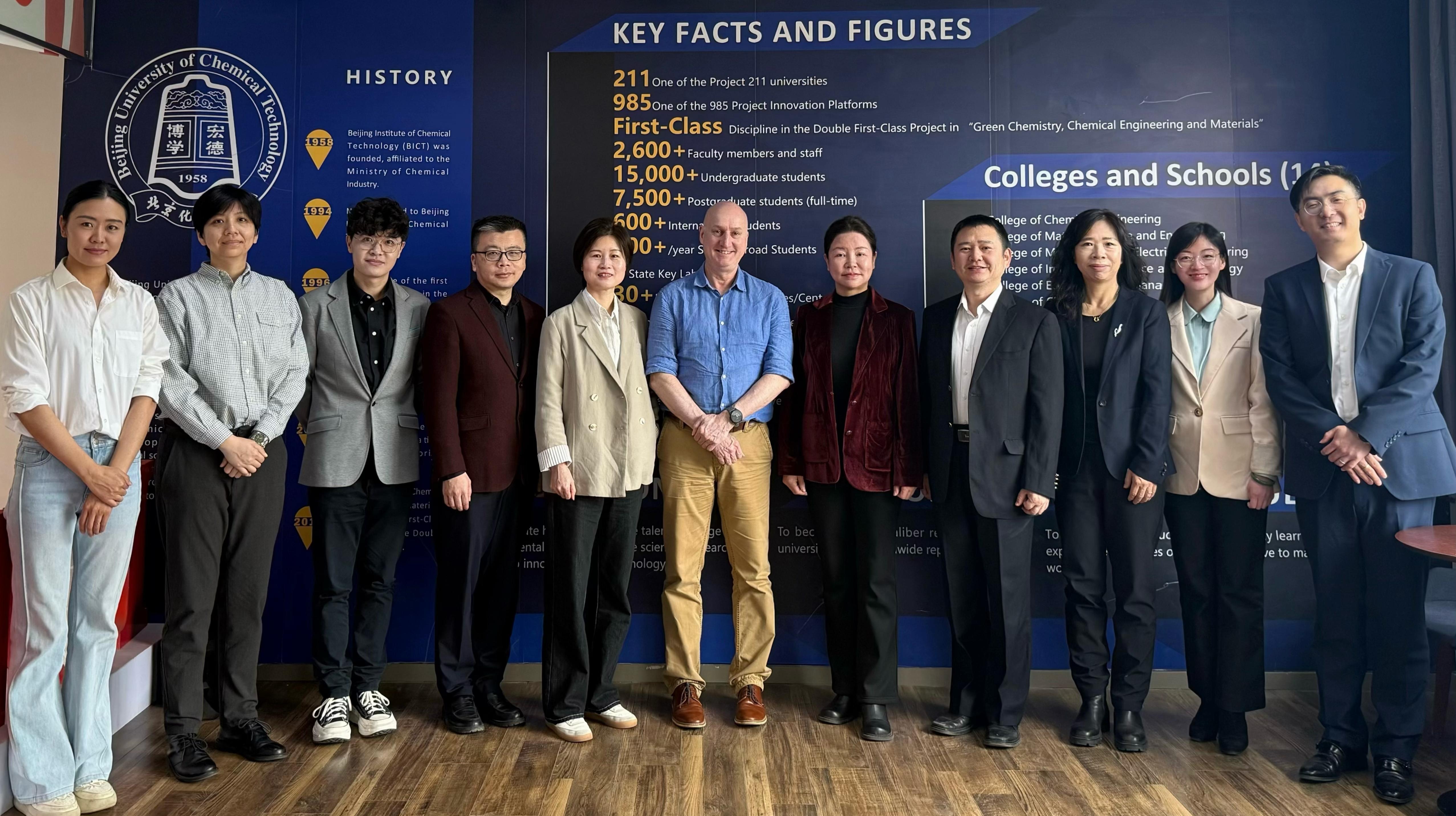 2026年4月13日上午,北京化工大学与英国诺丁汉大学合作会谈在我校朝阳校区图书馆505会议室成功举行。经济管理学院党委书记高红峡,经济管理学院及信息科学与技术学院相关专业负责人,诺丁汉大学工程、经济、计算机等学科负责人参加会谈,围绕两校合作发展路径展开深入交流与探讨。